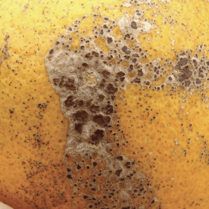Fruit damaged by the citrus rust mite will have a tarnished brown/bronze appearance; internally fruit is not damaged. Populations usually peak from July to August.