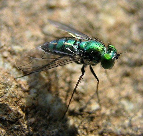 - Figure 3. Long-legged flies often have a green metallic casting. (Photo credit: Copyright © Lewis Scharpf)