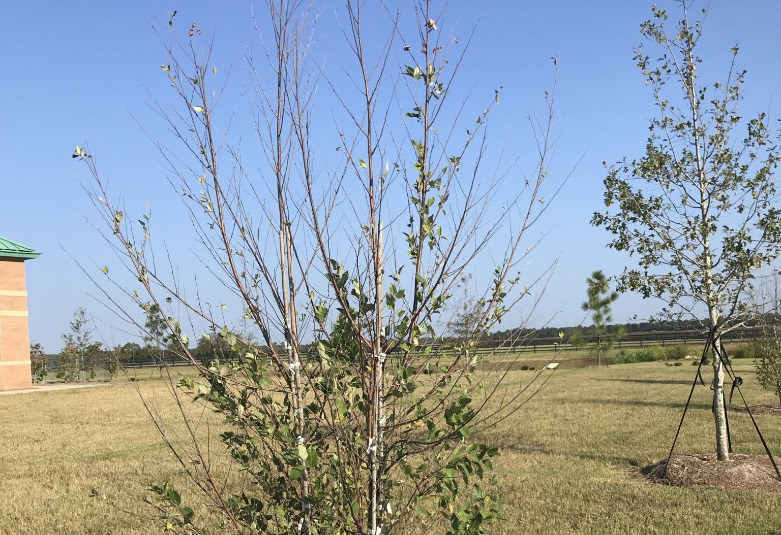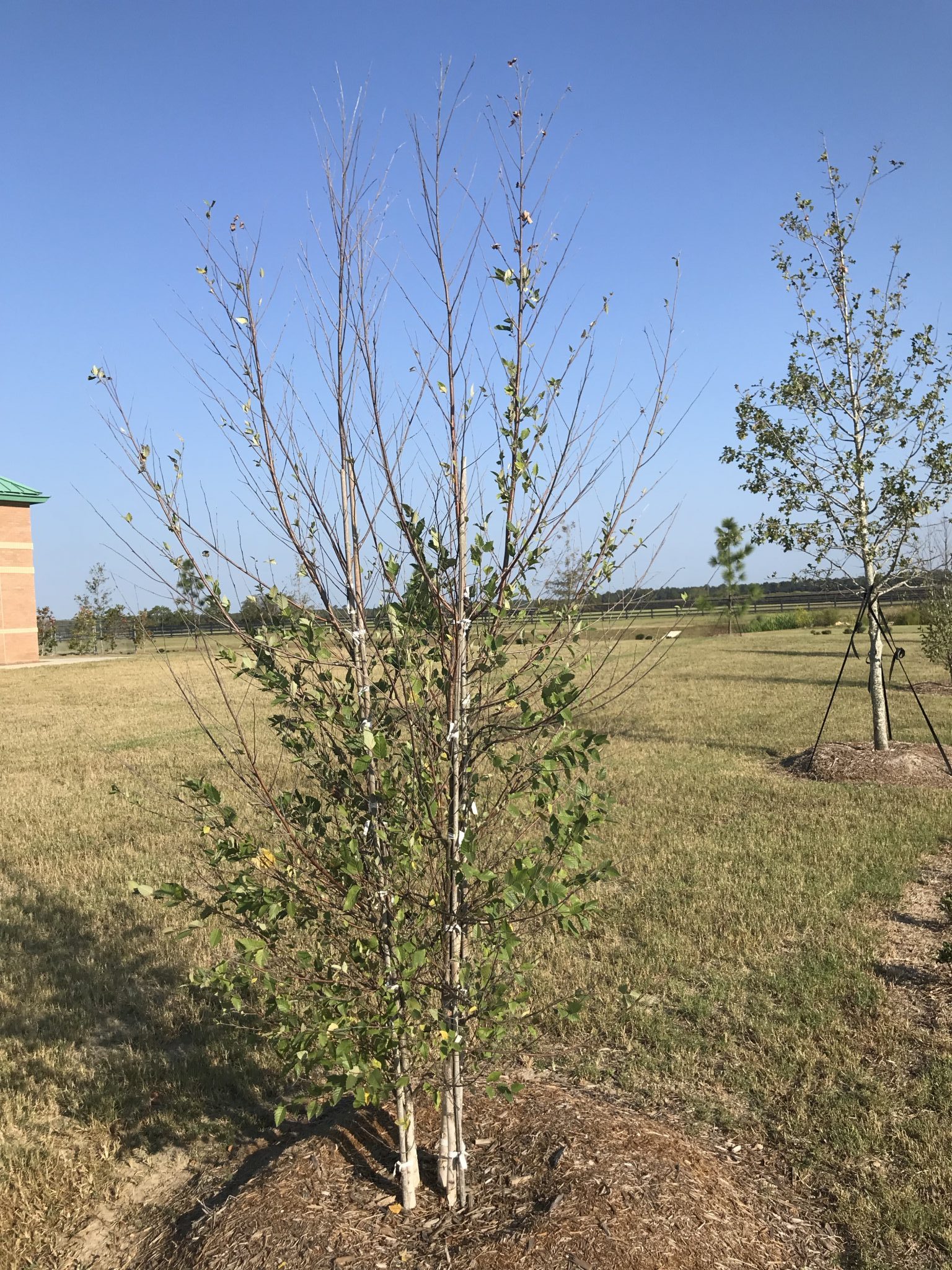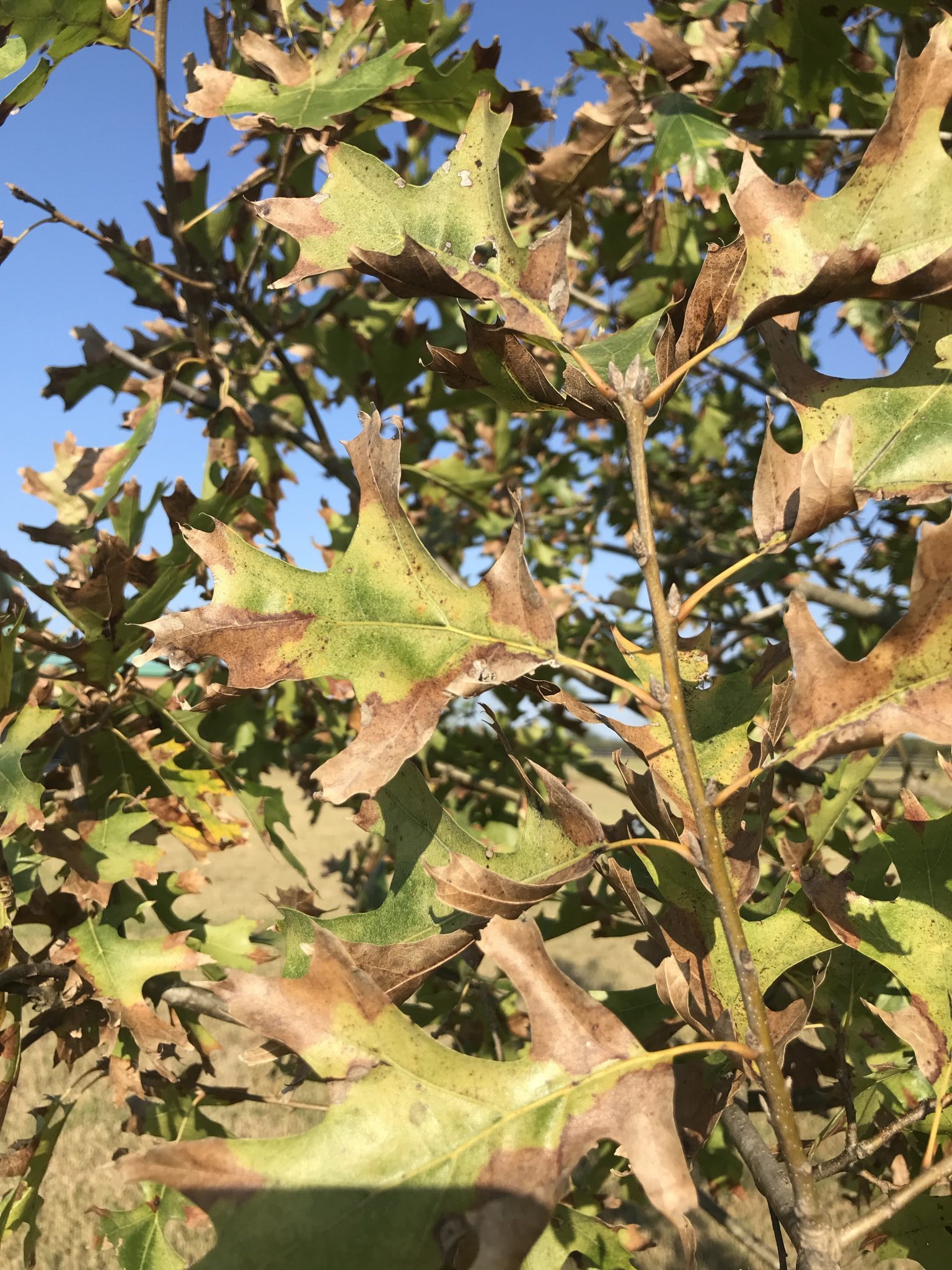 Trees in shallow soils will be more susceptible to drought stress. These include trees growing in rocky soils, shallow planters, or compacted soils. These trees will have shallow root systems and will be subjected to hotter and drier surface soils.