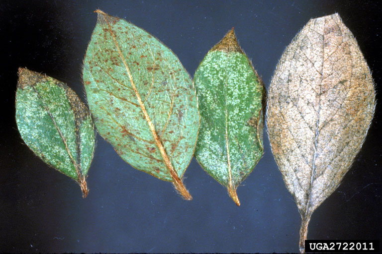These pests are very small and feed mainly on the underside of leaves. They often go unnoticed until plant damage is severe. The southern red mite is one of the more common mites on evergreen azaleas and is more prolific during cooler weather in spring and fall. Light infestations of mites can be controlled with an application of horticultural oil or insecticidal soap.