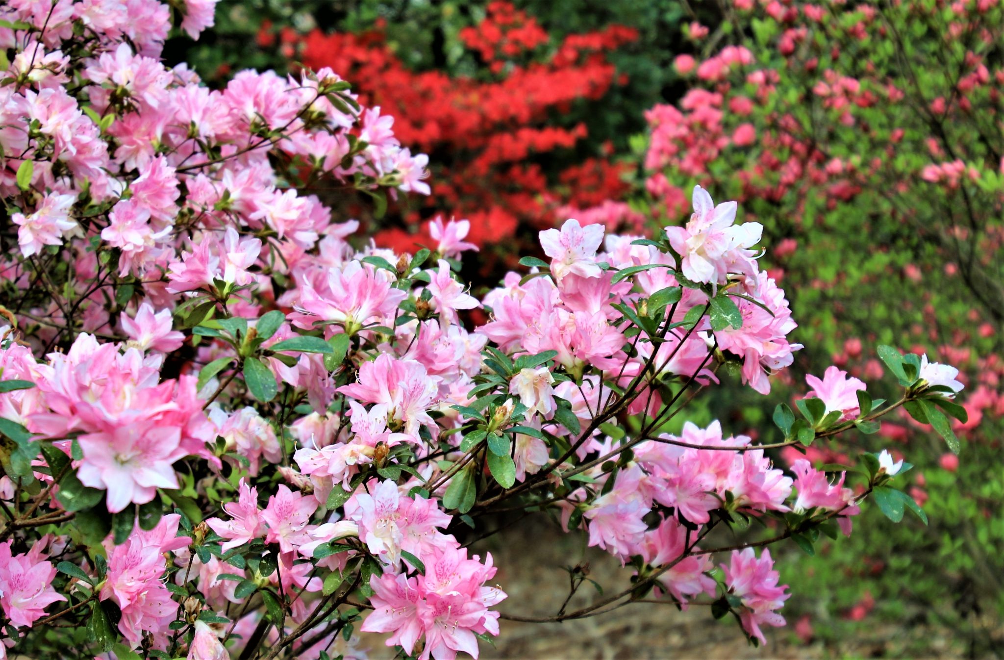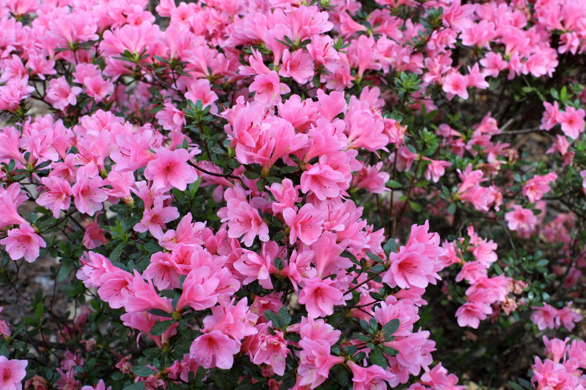 The first Kurume azaleas were brought to the United States from Japan around 1915, causing a wave of popularity for these evergreen azaleas. With the earliest bloom time each spring and a manageable size of 4 to 6 feet, they are some of the most common cultivars found in Alabama. They grow more slowly and have smaller leaves and flowers than Southern Indian azaleas. Most Kurume azaleas are cold hardy and can be grown in north and central Alabama. Because they are native to mountainous regions of Asia, Kurume azaleas are not as well adapted for south Alabama and coastal areas.