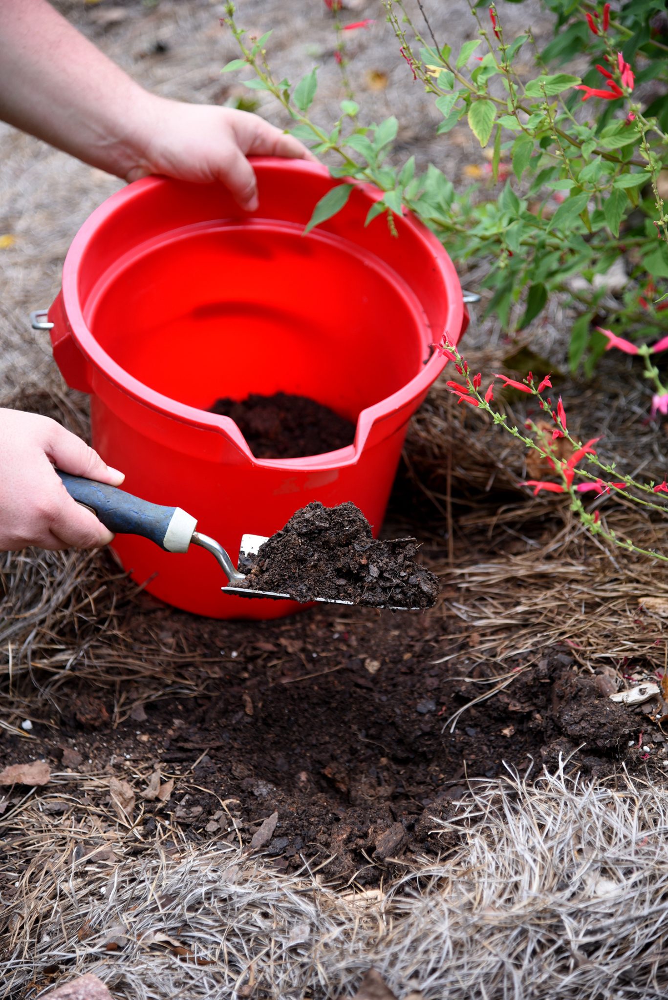 - Add compost to new plantings. Compost improves soil structure, increases water holding capacity, improves drainage, promotes soil fertility, and supports soil microbes. Mix in no more than a 3′′ to 4′′ layer to new plantings. Scatter a 1⁄2″ to 1″ layer on established planting beds.
