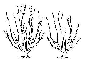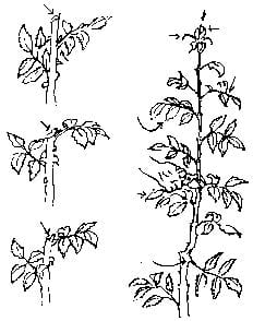 Varieties that tend to spread will grow more erect if the canes are cut back to an inside bud. Do not cut until plants are well established. Growth can also be controlled by rubbing off new and weak shoots not needed for blooms. Only two or three of the strongest buds per cane should remain.