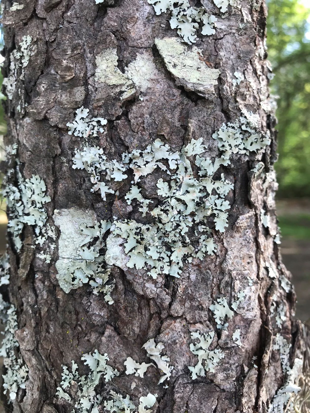 Lichens colonize a wide range of exposed surfaces of limbs, stumps, fence posts, soil, rocks, and other living and nonliving objects. Lichens are firmly attached to these hard surfaces. They are most numerous on limbs and trunks of large mature trees and shrubs in full sun, particularly those plants with badly thinned canopies. Most lichens will not thrive on heavily shaded twigs and branches of healthy woody plants. Few lichens are found in areas with high levels of ozone, sulfur dioxide, acid rain, and other common air pollutants. Consequently, lichens are a good indicator of air quality.