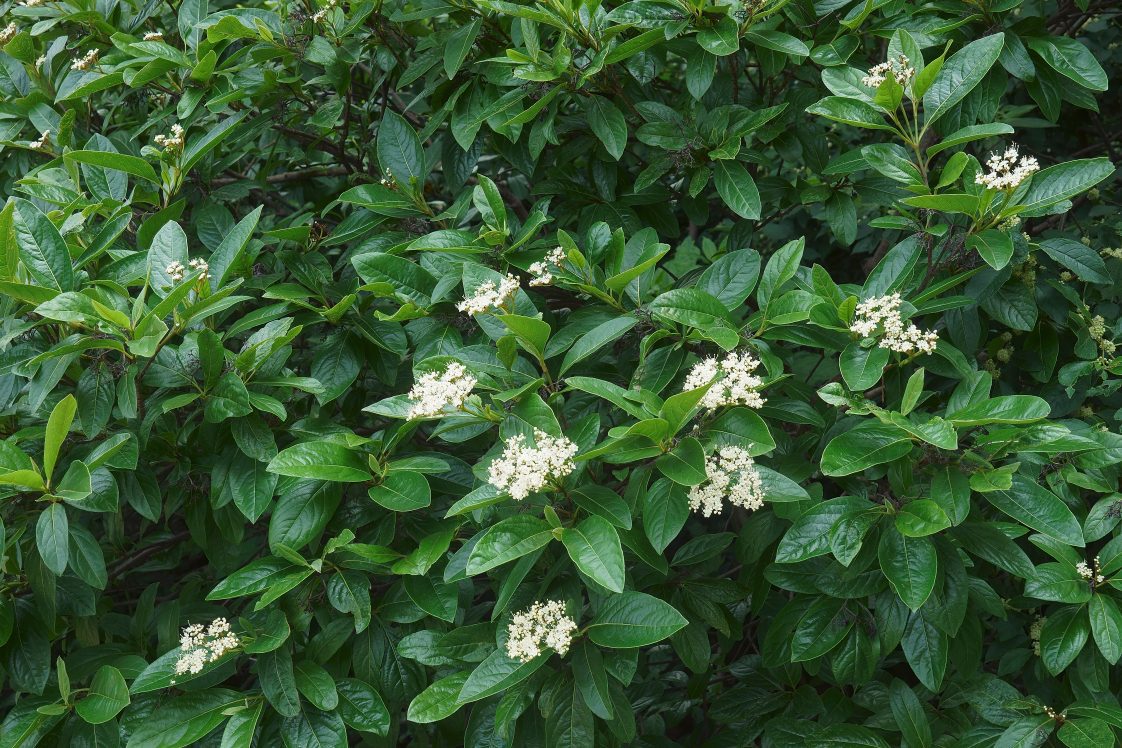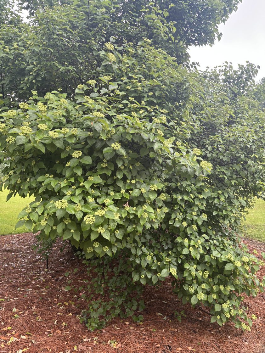 Native replacement: native viburnums, including possumhaw viburnum, Viburnum nudum, and arrowwood viburnum, Viburnum dentatum