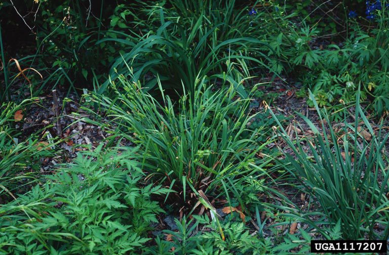 Native replacement: native sedges, including Cherokee sedge, Carex cherokeensis, plantainleaf sedge, Carex plantaginea, and blue wood sedge, Carex flaccosperma