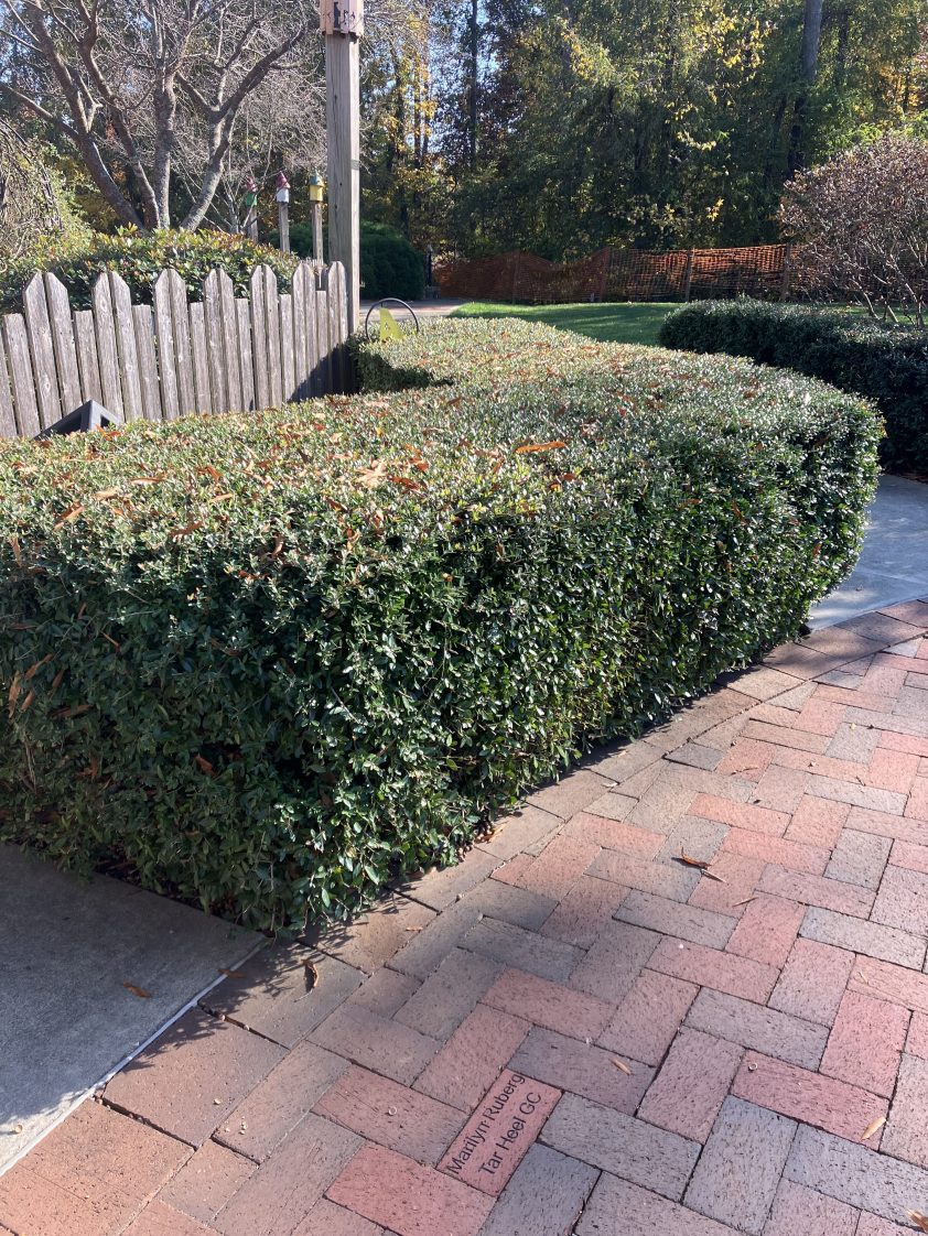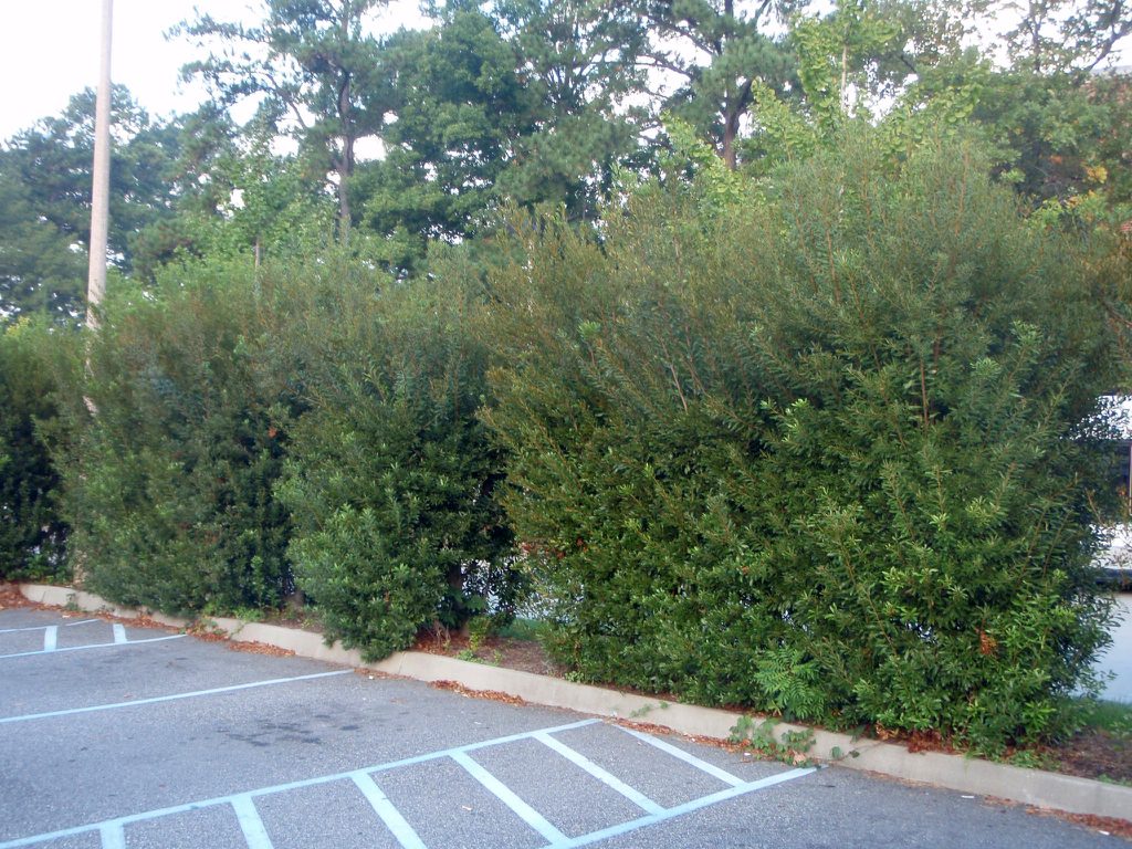 Yaupon holly is a native evergreen shrub, naturally occurring in Alabama’s coastal plain (figures 45 and 46). It can grow to 15 feet tall, but many shorter cultivars are available (figure 47). The leaves contain caffeine and can be brewed as tea. There are separate male and female plants, with only females producing fruit (with a male pollinizer). It is naturally found in dry, sandy forests and tolerates a wide range of light exposure. It withstands heavy pruning (figure 47). Plant it en masse as a screen, foundation planting, or windbreak.