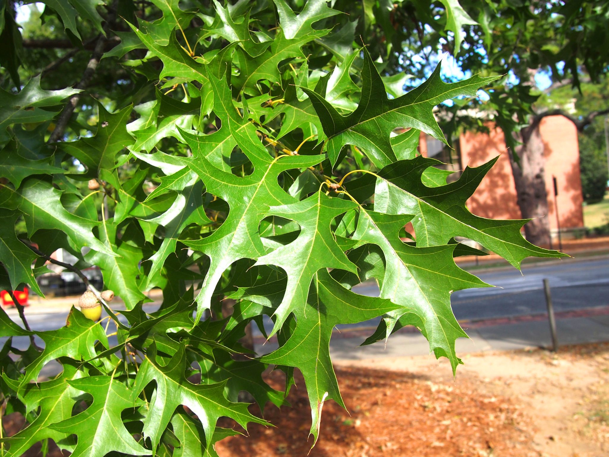 - Nuttall oak (Quercus texana) is planted to create shade. It is drought tolerant once established, has a medium to fast growth rate, and displays showy fall color. Oaks support a variety of wildlife.