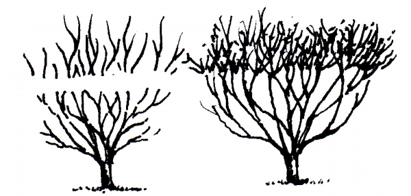 - Figure 4i. Pruning hedges straight across top will produce unnatural shape. Prune entire plant to produce rounded effect.