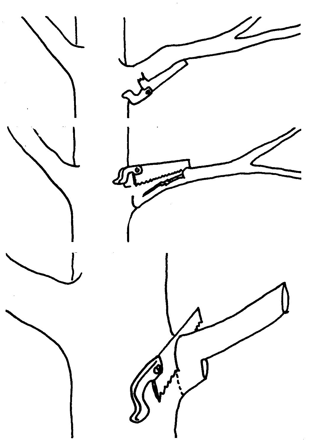 Any wound must close over if the plant is to stay healthy. Wound dressings do not help the healing process. In general, the tree is able to close over the wound itself. This is why it is important to make the final pruning cut close to the main trunk. See the illustration on the next page of the three steps.