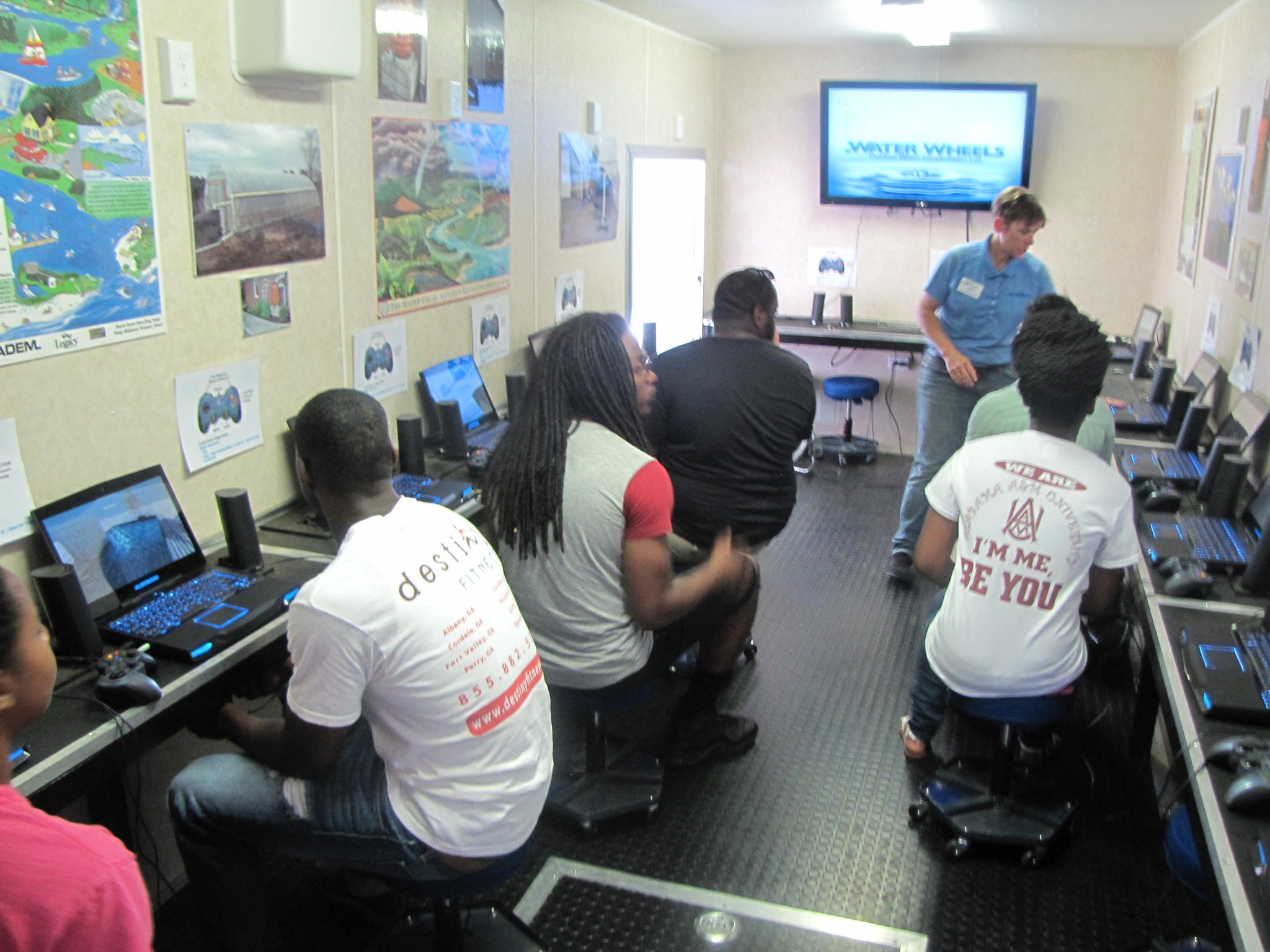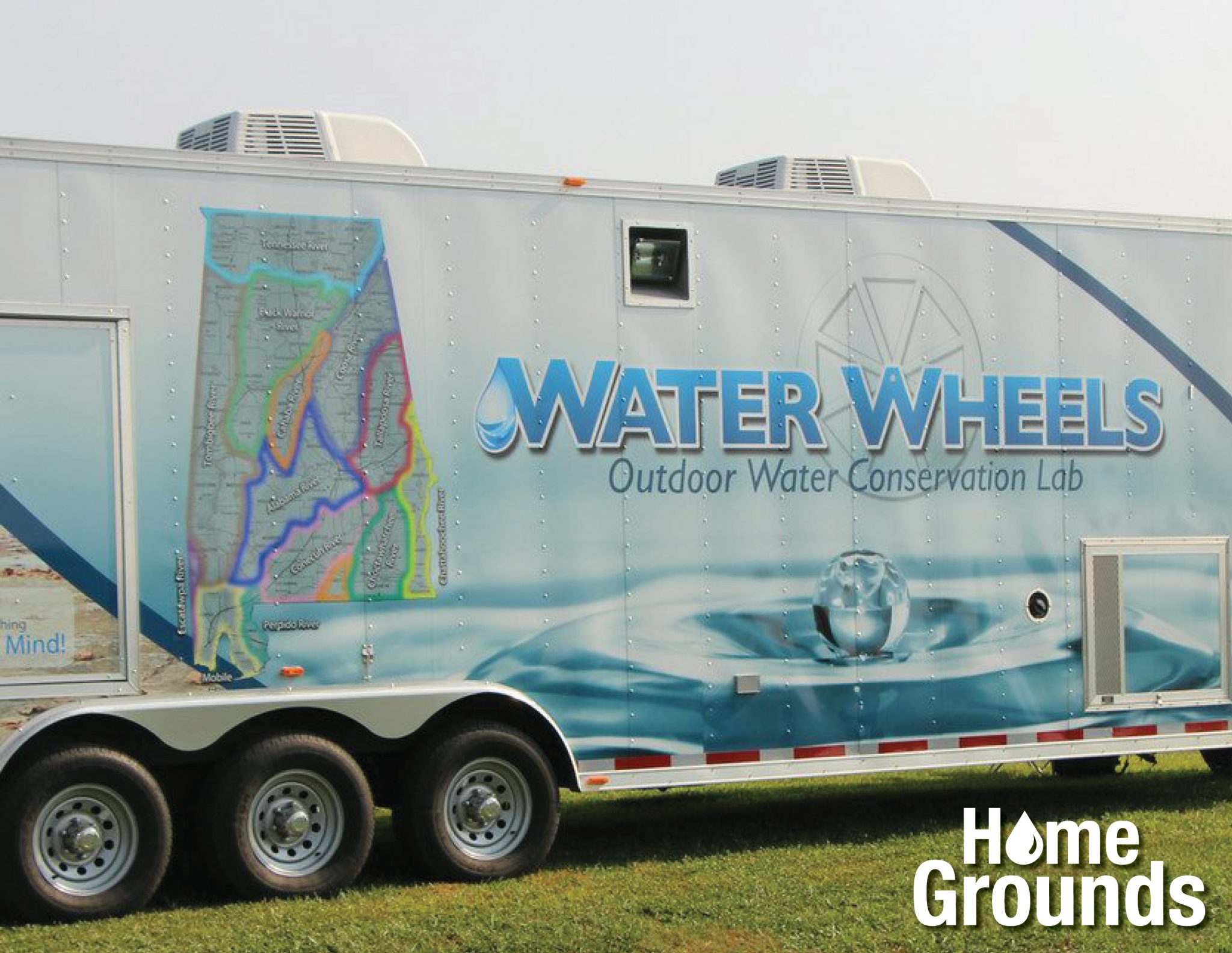 The Water Wheels: Outdoor Water Conservation Laboratory is a 36-foot mobile water conservation laboratory that is utilized by the Home Horticulture and Urban Agriculture programs to illustrate the urban water cycle. This mobile lab is available to travel all over Alabama bringing conservation learning in the form of fun activities, gaming computers and a 3-D water conservation game: “Water You Doing.”