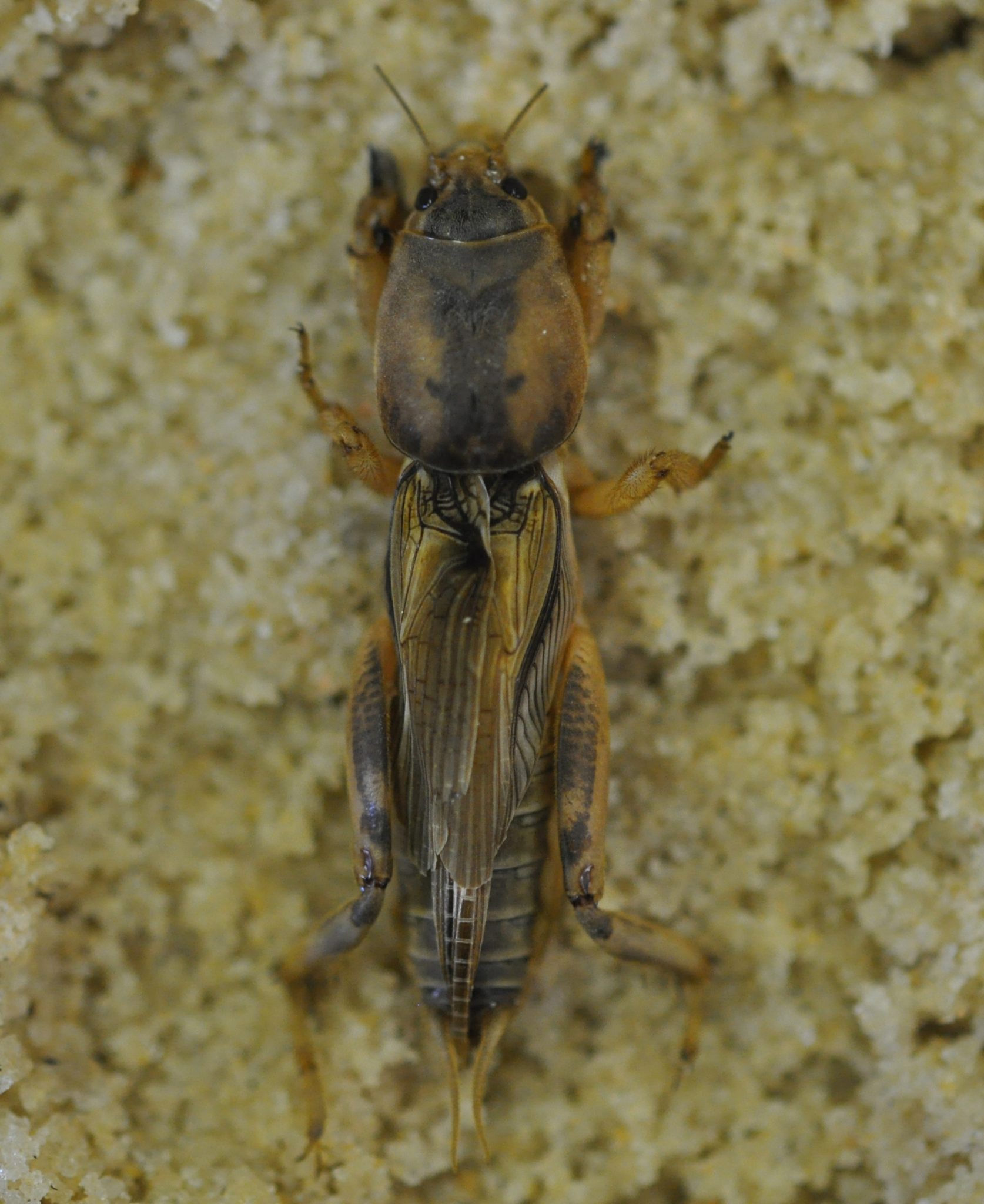 - Figure 2. Tawny mole crickets are typically golden brown with a mottled coloration on the pronotum.