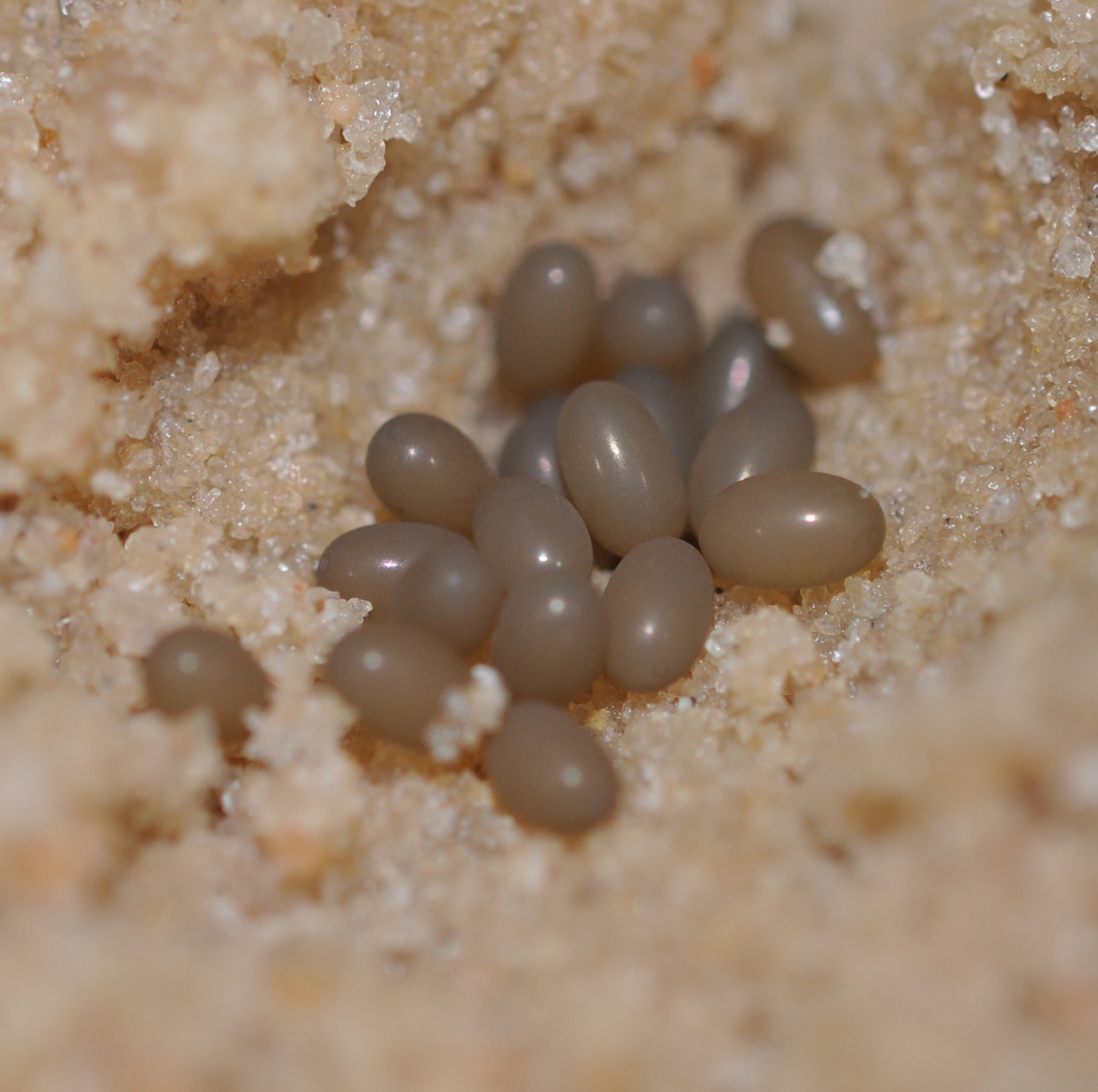 Soil moisture is a good predictor of egg-laying success and may trigger egg-laying behaviors. Eggs are laid in clutches of ten to sixty eggs (average is thirty-five) in a chamber 1 to 12 inches below the surface, depending on soil moisture (Figure 4).