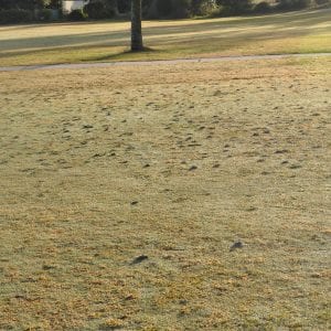 - Figure 12. Mole crickets produce numerous small mounds of soil. They are smaller than fire ant mounds and can be flattened during mowing, which kills the grass underneath.