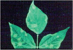- Figure 11. Yellow halo surrounding infection site on bean leaf typical of halo blight
