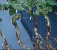 - Figure 2. Rhizoctonia root rot lesions near soil-line on beans
