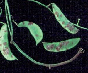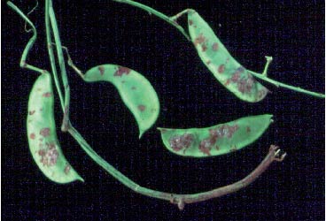 - Figure 9. Small, reddish-brown elongated spots are symptomatic of anthracnose on bean pods