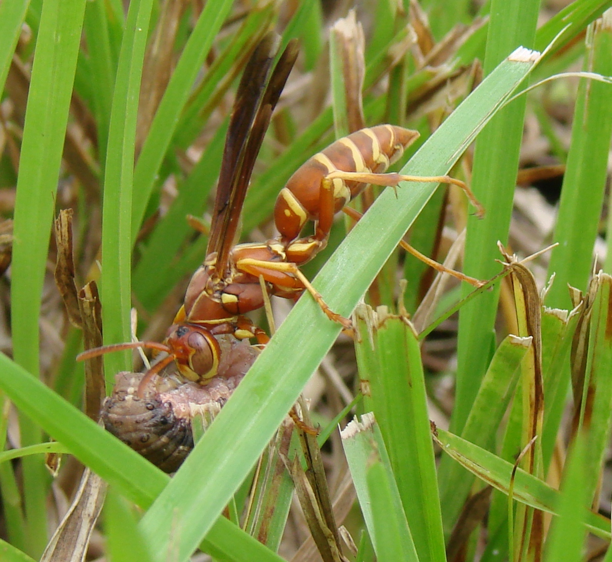- Figure 7. Paper wasps grab the larvae, kill them, and knead them into balls.