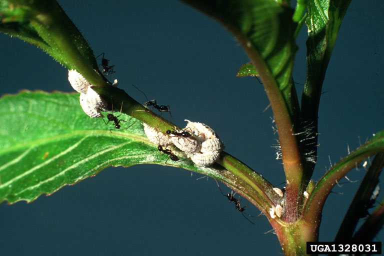 - Figure 16. Ants tending mealybugs for their honeydew (photo by Alton N. Sparks Jr., Bugwood.org)