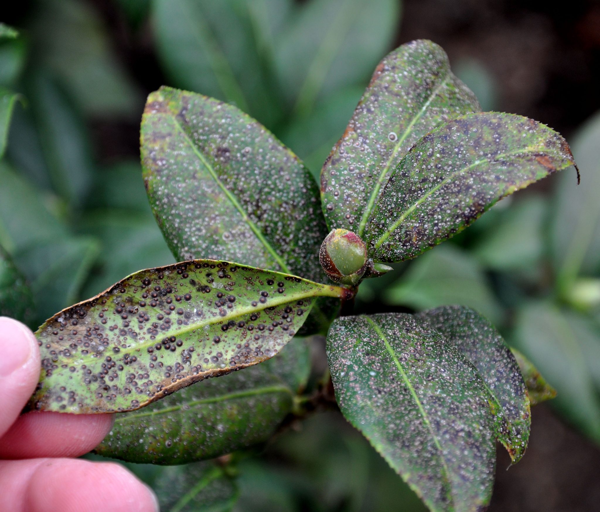 - Figure 6. Wax scale and sooty mold on Indian hawthorn