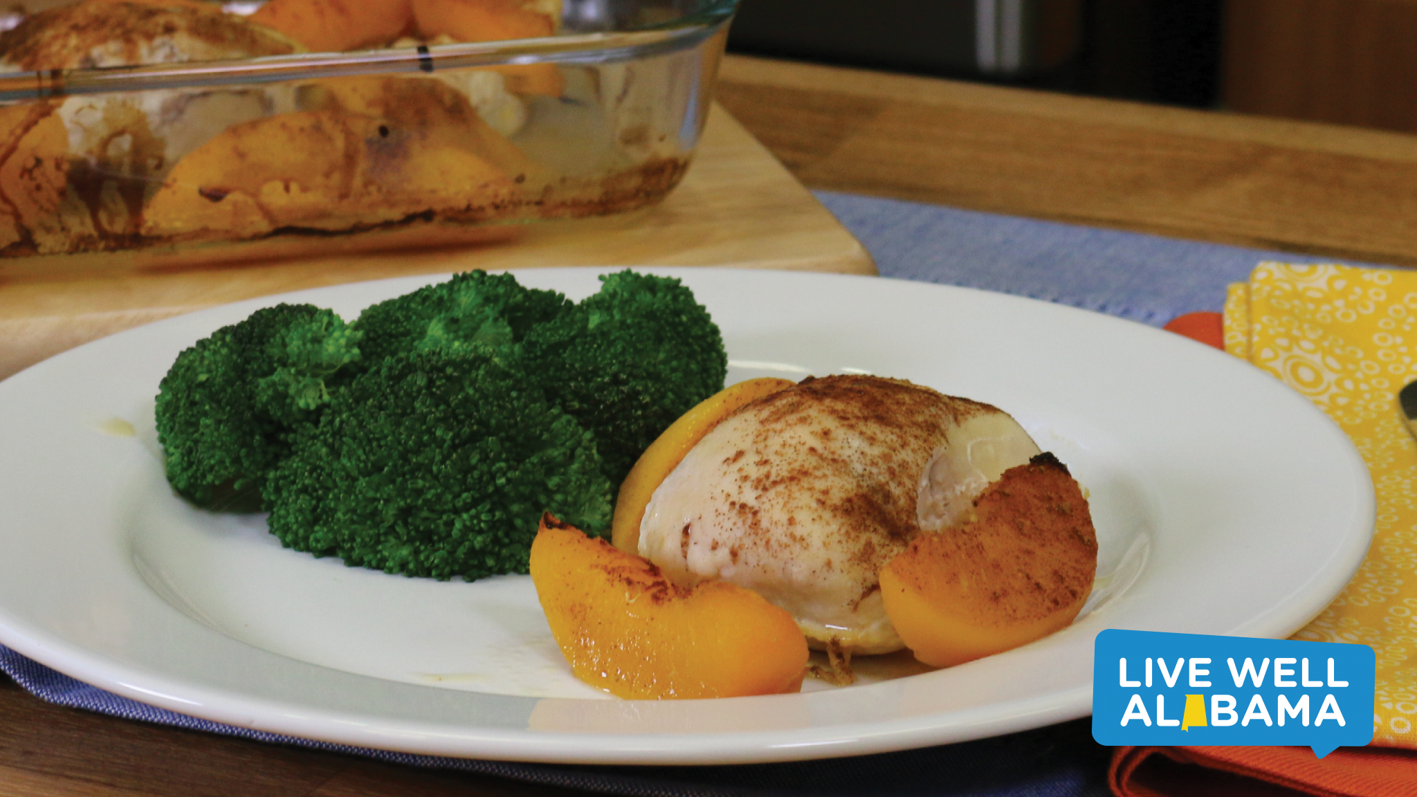 Try our tasty Just Peachy Chicken recipe! Buy canned fruits packed in 100% juice or water to cut down on the added sugar. Serves 4.