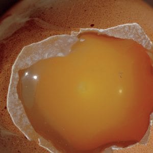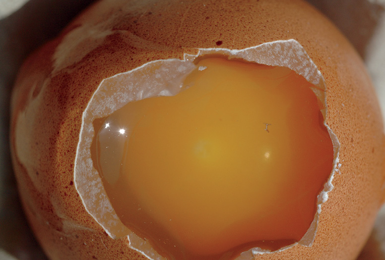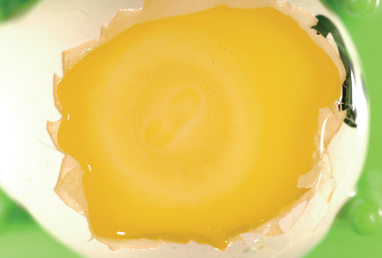 - Infertile, unincubated egg. Blastodisc located on top of yolk appears irregular in shape.