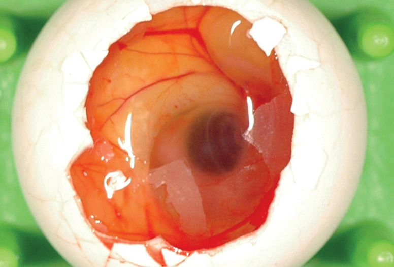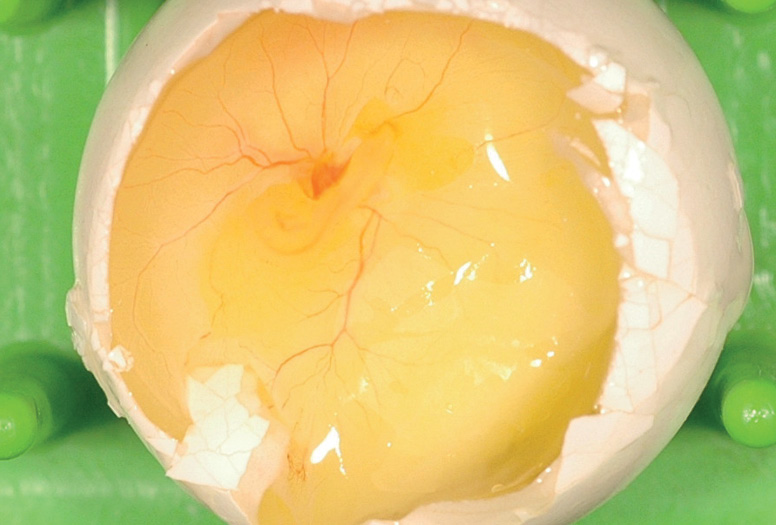 - Fertile, unincubated egg. Blastoderm larger, more regular in shape and has a “donut-appearance.”
