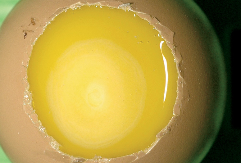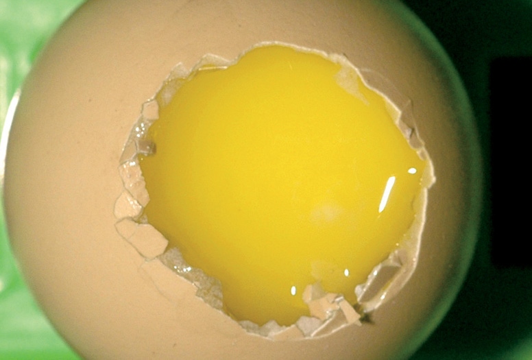 - Fertile, unincubated egg. Blastoderm larger, more regular in shape and has a “donut-appearance.”