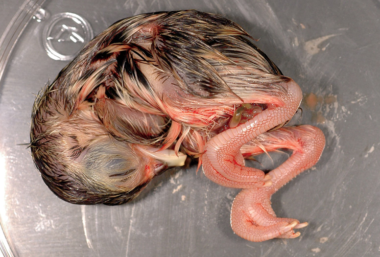 - Day 12 Feather tracts seen on the back. Wings, feet, toes well developed.