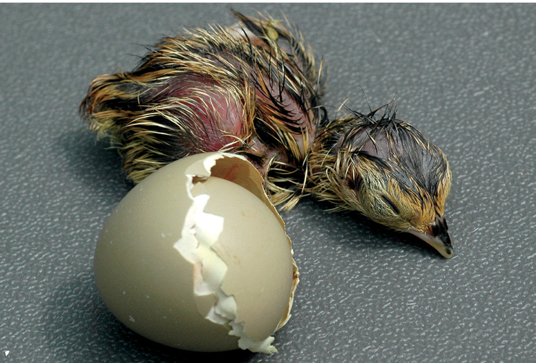 - Days 10-11 Egg tooth seen on tip of beak. Eyes very conspicuous.