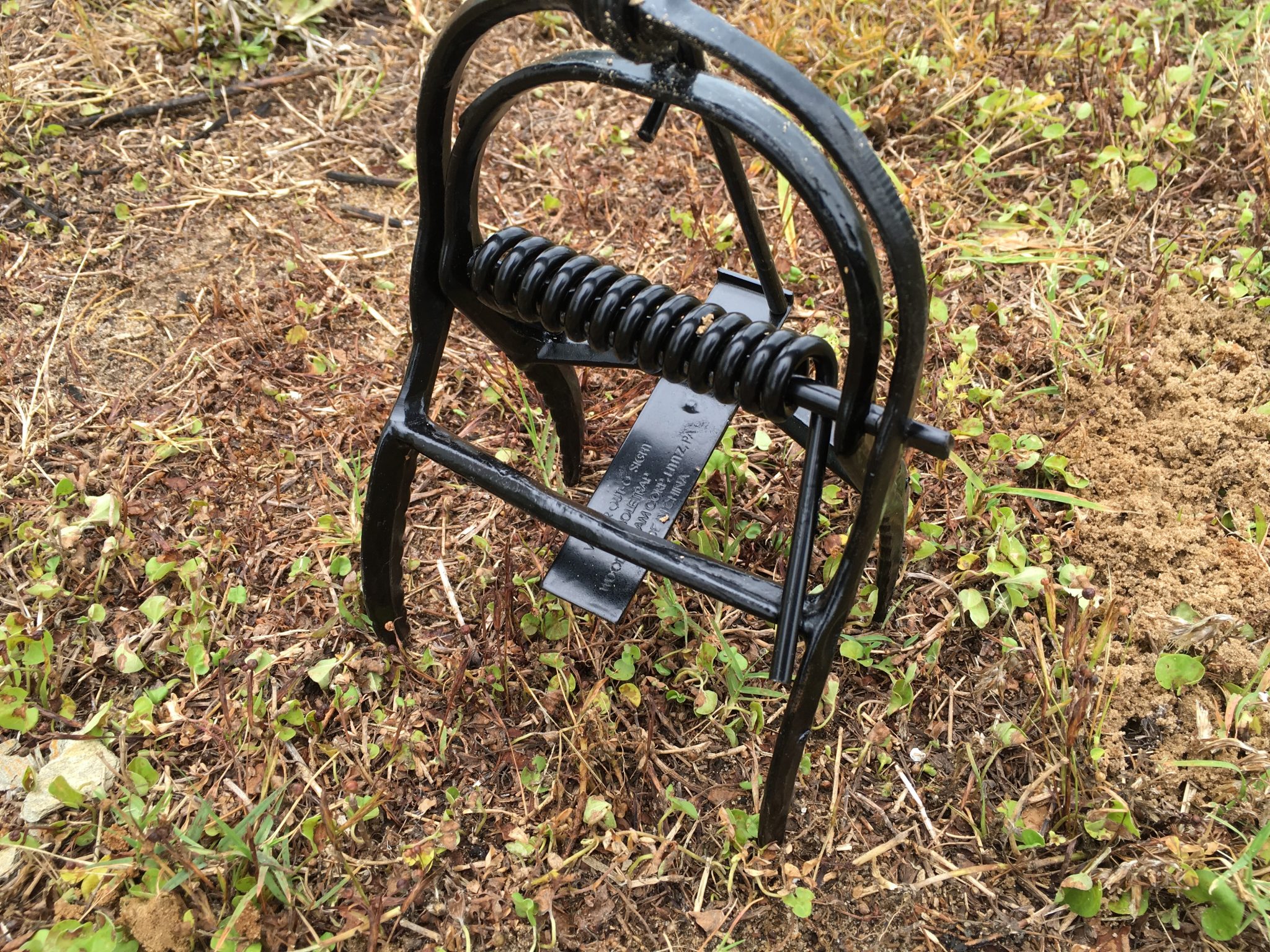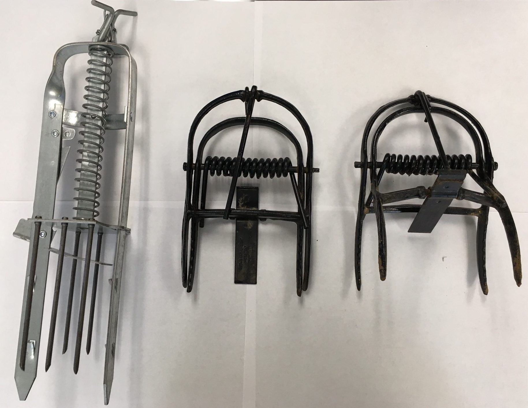Lethal traps are usually of three types: harpoon (fig. 6), scissor-jawed (fig. 8), and choker. Any of these work well if set properly, but soil type can impact effectiveness. Harpoon traps are more effective in sandy soils, while scissor-jawed and choker traps are more effective in loamy soils, or soils with a higher clay content.