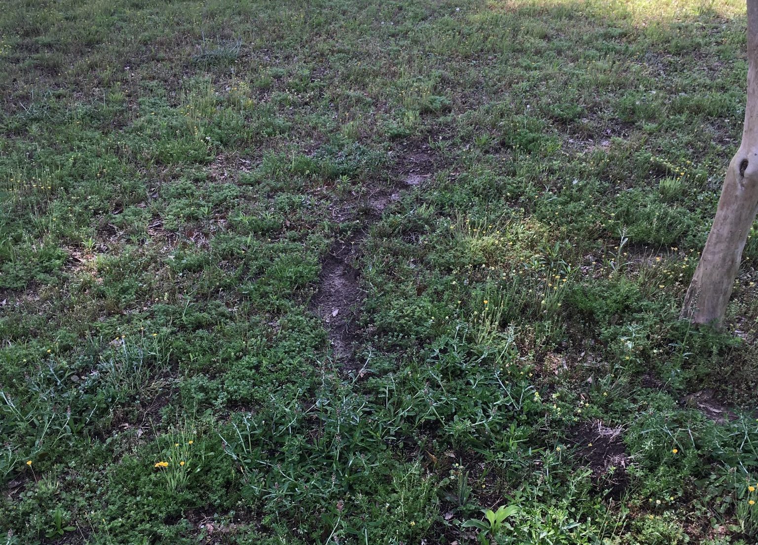 Moles seldom cause extensive damage to plants. Their tunneling activities, however, can disfigure lawns and gardens (fig. 2 and fig. 3). The greatest risk is from burrows that wash out during heavy rains, posing a safety hazard. The most obvious sign of damage by voles is a dead or dying plant. Vegetable gardens, ornamental plantings, and young forest stock are all susceptible. Voles may tunnel adjacent to root systems, eating the roots and chewing or “girdling” the main stem just above the ground.