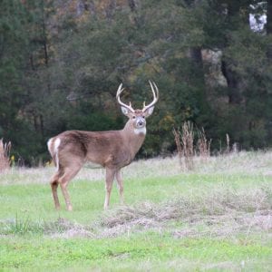 Food plots should be no less than 1 acre and may be 3 to 5 acres or more. Up to 10 percent of your total acreage can be put into food plots. Suggested plants include alfalfa, chicory, clovers, clover and small grain mixtures, corn, corn and soybean mixtures, oats, winter rye, ryegrass, soybeans, cowpeas, and wheat. For additional information on food plots for white-tailed deer, see the Alabama Department of Conservation and Natural Resource’s Division of Wildlife and Freshwater Fisheries publication “Effective Food Plots for White-Tailed Deer in Alabama” available for free online.