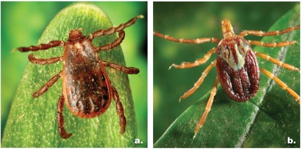 Figure 2. Brown dog tick (a), Gulf Coast tick (b) Photos courtesy of the Centers for Disease Control and Prevention, James Gathany